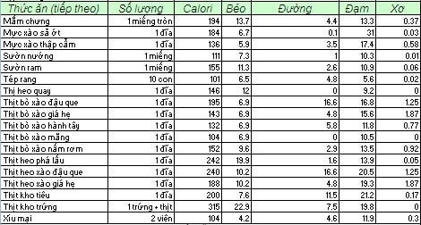 Dưới đây là bảng tính calories của một số món ăn phổ biến, bạn có thể tham khảo để biết mỗi ngày mình nên ăn bao nhiêu là đủ.
